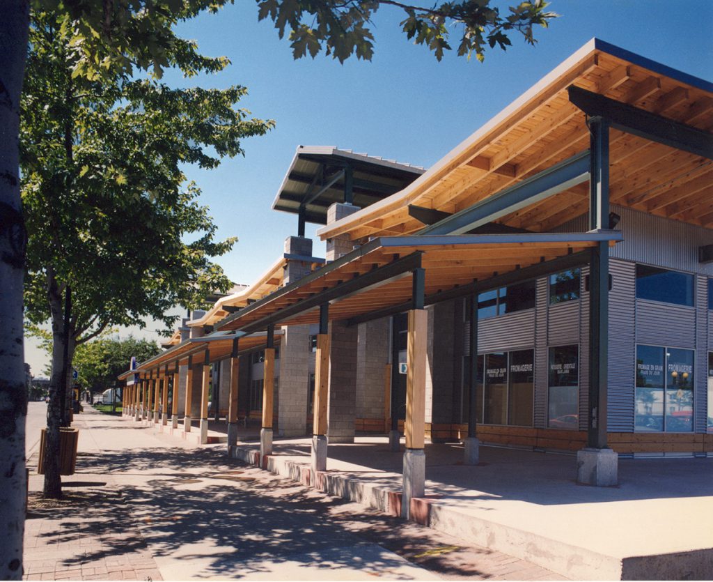 Depuis la réalisation du projet du nouveau Marché Maisonneuve pour la Corporation de gestion des marchés publics de Montréal, le bureau a été impliqué dans de nombreux projets de marchés publics, à Montréal et ailleurs au Québec. (Voir aussi les projets du marché Jean-Talon). Ces expériences ont permis de mieux saisir les enjeux réels de l’aménagement des marchés et les critères à respecter pour aider à leur succès.