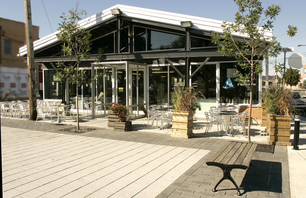 La firme a été retenue par la Ville de Lachine pour rénover son marché. Les travaux permettant l’aménagement de commerces permanents et d’une petite place publique ont aidé à revitaliser ce petit marché.